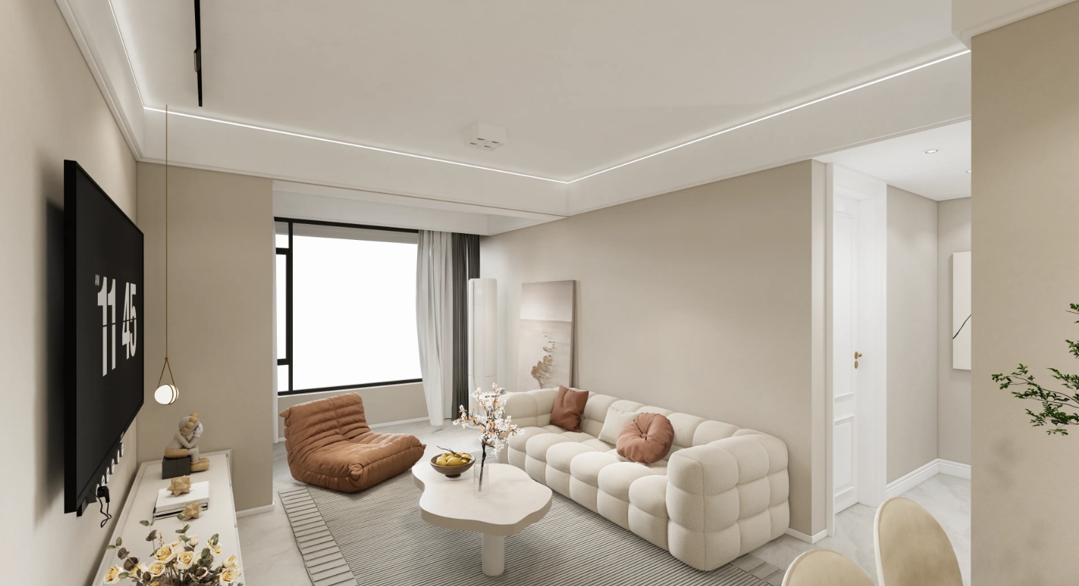 風(fēng)格:簡(jiǎn)約 溫馨 造價(jià):18萬 面積148m2 說明:通過不同的亮度、色溫把握以此豐富 家居空間層次。以亮度為媒介;柔和無眩光讓空間有過渡性、有引導(dǎo)性近而提升 空間舒適度。